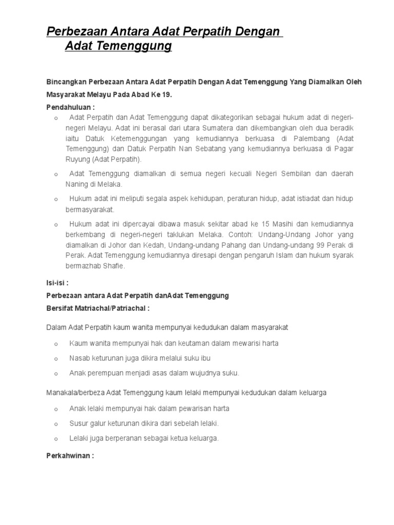 It is based on the characteristic of the patrilineal form of organisation and. It is based on the characteristic of the patrilineal form of organisation and. It is based on the characteristic of the patrilineal form of organisation and. Perbezaan dan persamaannya dengan adat temenggung. Ada 20 gudang lagu sejarah adat perpatih dan adat temenggung terbaru, klik salah satu untuk download lagu mudah dan cepat.